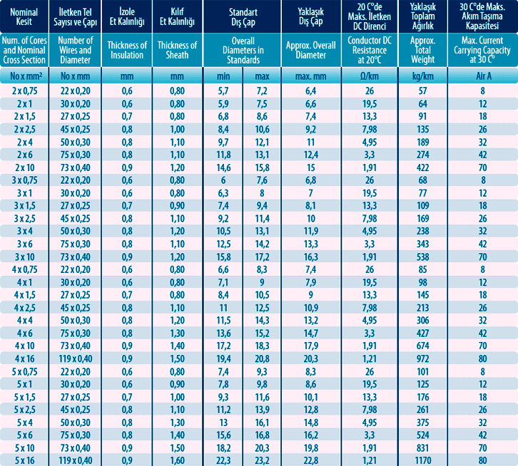 Construction: This cable is designed with fine wires and a flexible structure. It is typically made from copper wires, and these wires are coated with PVC (polyvinyl chloride) or a similar insulating material. Its flexible structure facilitates its use in tight spaces and with movable devices.