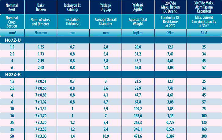 Halogen-Free Insulation: The H07Z-U/R cable is manufactured using insulation materials that do not contain halogens. Materials containing halogens can produce toxic smoke and gases in fire situations. Halogen-free insulation is considered a better option for fire safety.