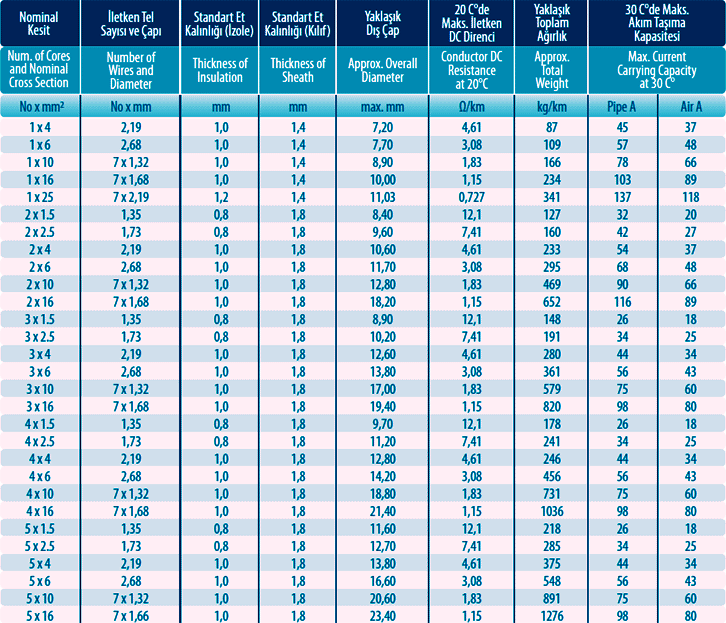 Nominal Voltage: The YVV (NYY) cable is generally designed for low voltage values, such as 450/750V. This low voltage is a standard value often used in residential and commercial installations.